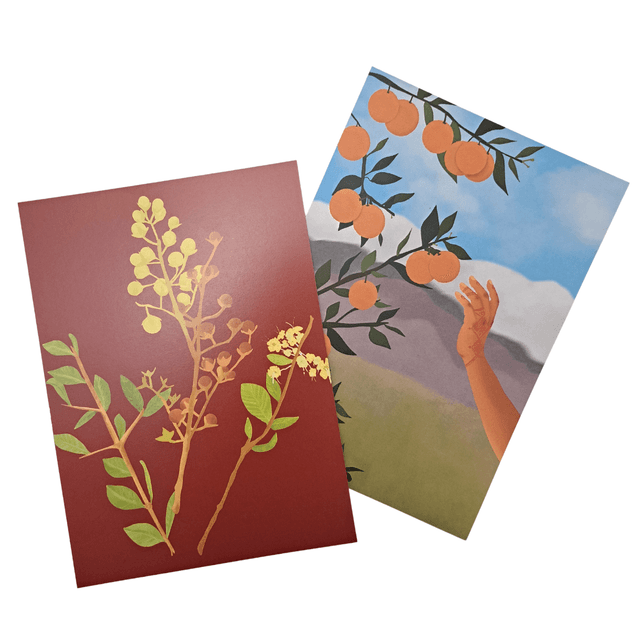 • Carte FLORALE HENNÉ / linogravure MONTAGNE / carte poétique CHANT DU SOLEIL (A6)