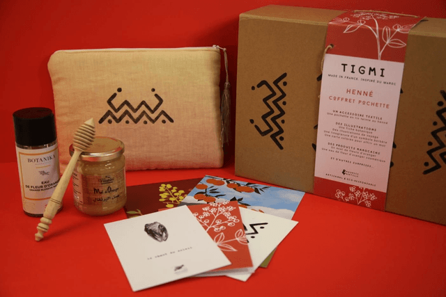 Embarquez pour un voyage sensoriel sous le soleil marocain et dans la culture amazigh (berbère), avec nos coffrets mêlant illustrations colorées, pochette en lin et produits du Maroc !