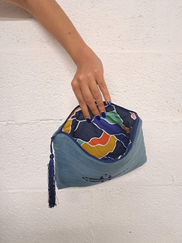 • Pochette en lin bio teinte à l'indigo et au réséda (25x18 cm)